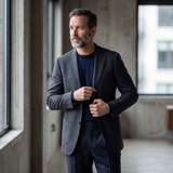 A diferença está no ajuste: ombros alinhados, lapelas firmes e estrutura impecável.