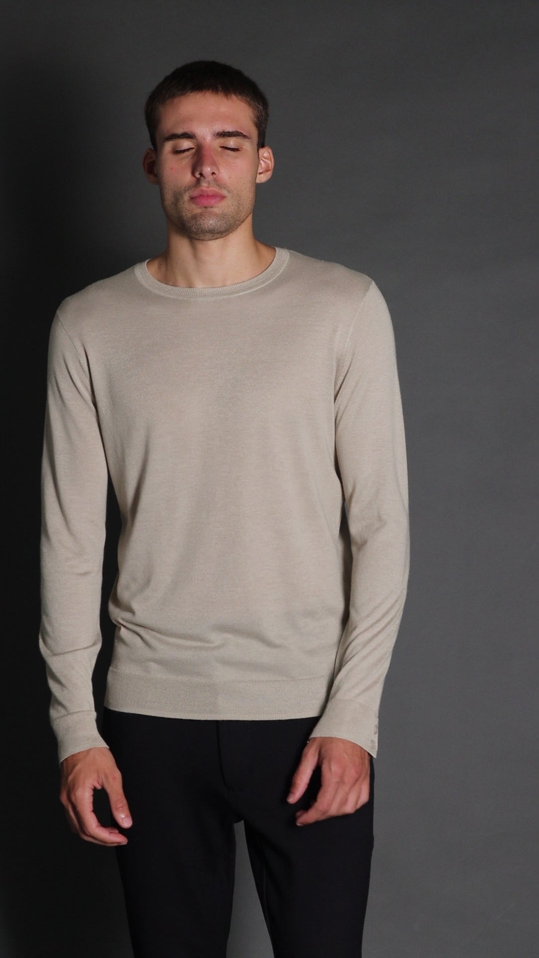 | Camiseta manga longa em malha retilínea com textura estruturada e acabamento refinado. A construção da malha proporciona maior estabilidade e caimento alinhado ao corpo, já a presença da seda garante um toque macio e confortável. Possui gola bem definida e estrutura que valoriza a silhueta sem perder leveza. Nos punhos possui detalhe em cor e fechamento com dois botões para maior ajuste. Peça moderna e sofisticada, ideal para composições minimalistas na transição de estação. Dica de uso: Ideal para um look casual sofisticado, combine com calça de algodão pima e sapatos casuais para um visual elegante e confortável. |