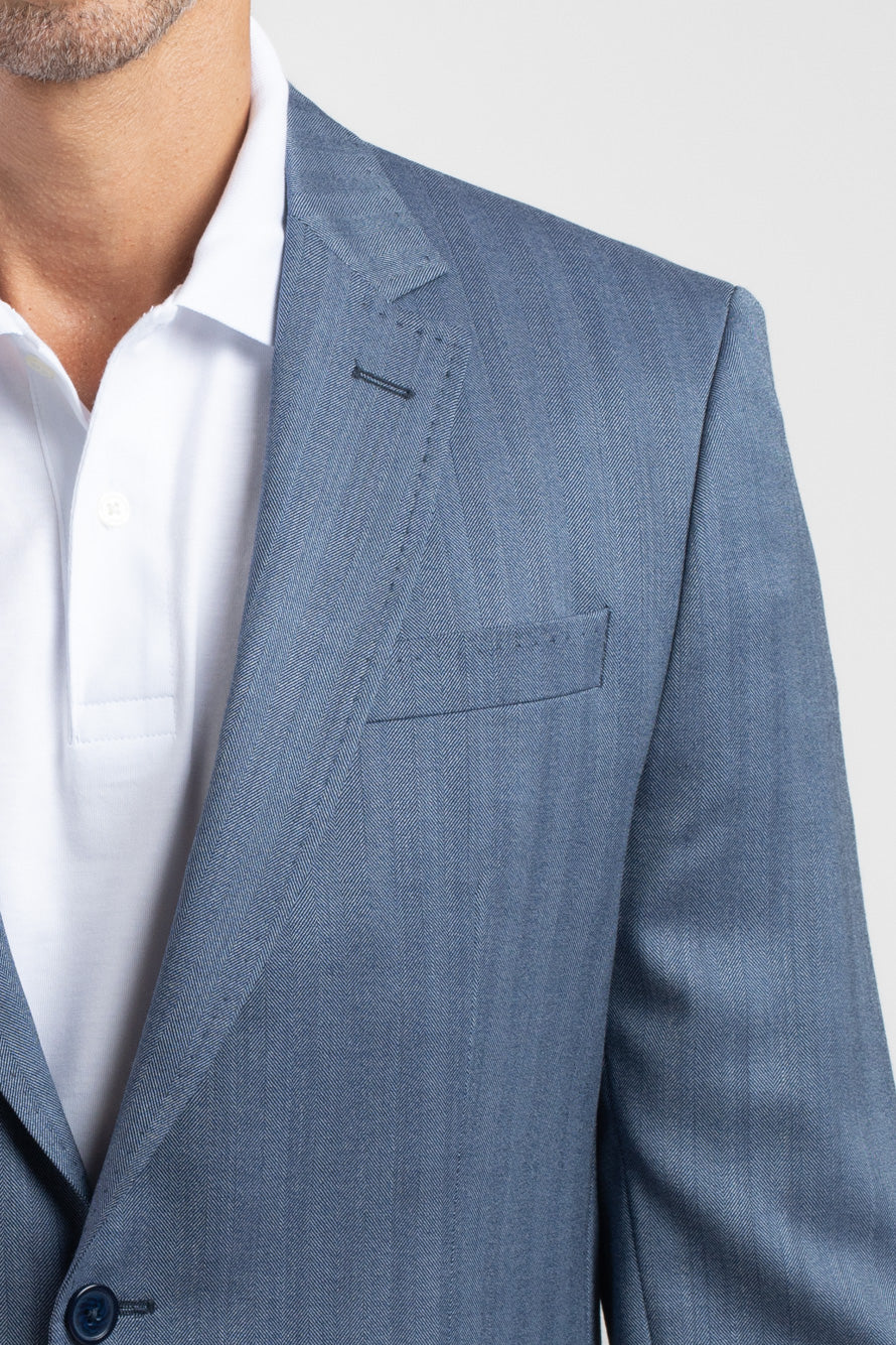 Paletó 2 botoes de tecido maquinetado lã da linha Premium, abertura costas, modelagem slim. Moderno e sofisticado esse paletó é uma peça chave para essa estação, feito na cor azul indigo é facil de compor varios looks, usado com calça de sarja e tenis, como vai cai muito bem com calça jeans.