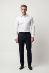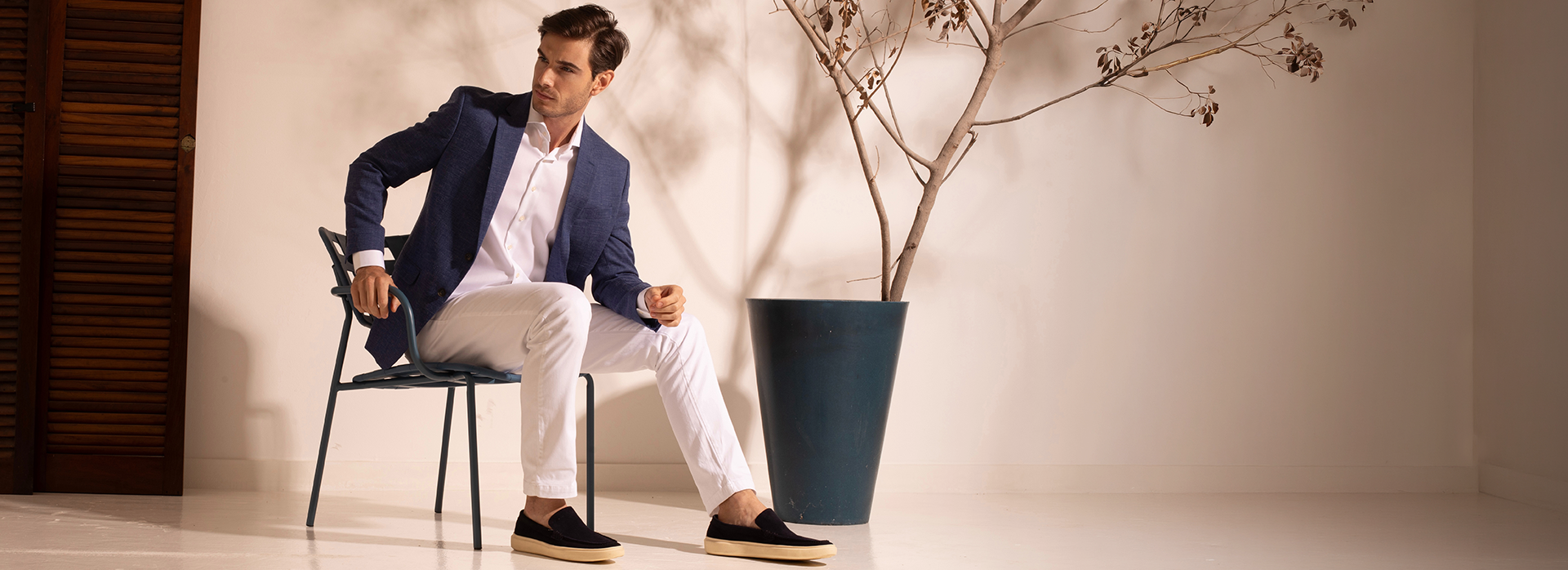 A diferença está no ajuste: ombros alinhados, lapelas firmes e estrutura impecável.