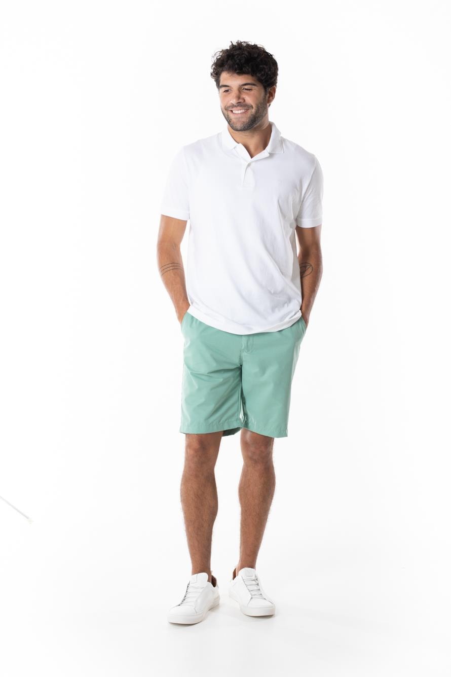 Bermuda feita em tecido tecnológico, com toque macio, modelagem confortável e elástico na cintura com cordão interno, dando mais conforto no ajuste da cintura. Comprimento acima do joelho, ideal para ser usado com camisetas e polos.