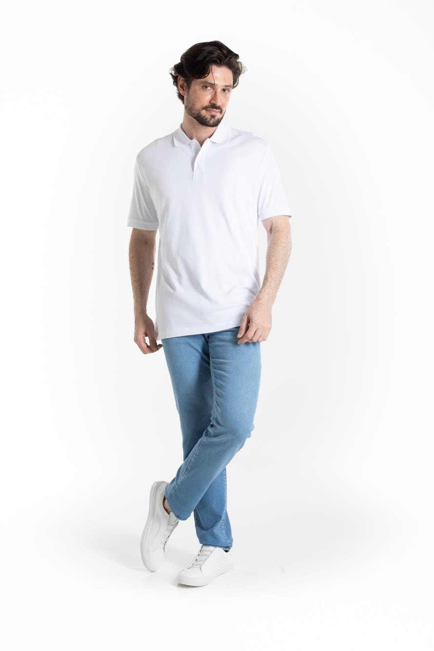 Peça essencial com design clássico e elegante, confeccionada em jeans de alta qualidade, oferecendo um ajuste perfeito e praticidade com seus cinco bolsos funcionais.