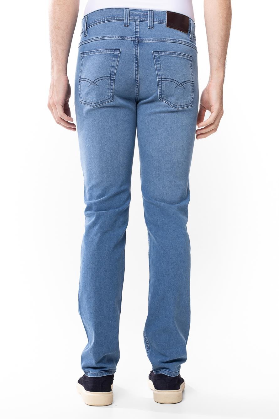 Jeans com alta concentração de algodão, oferecendo estrutura firme e toque natural. Visual clássico e consistente.