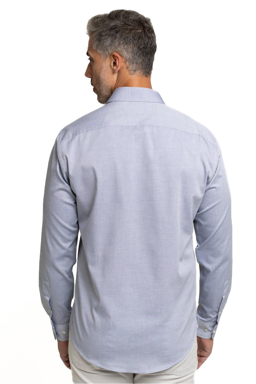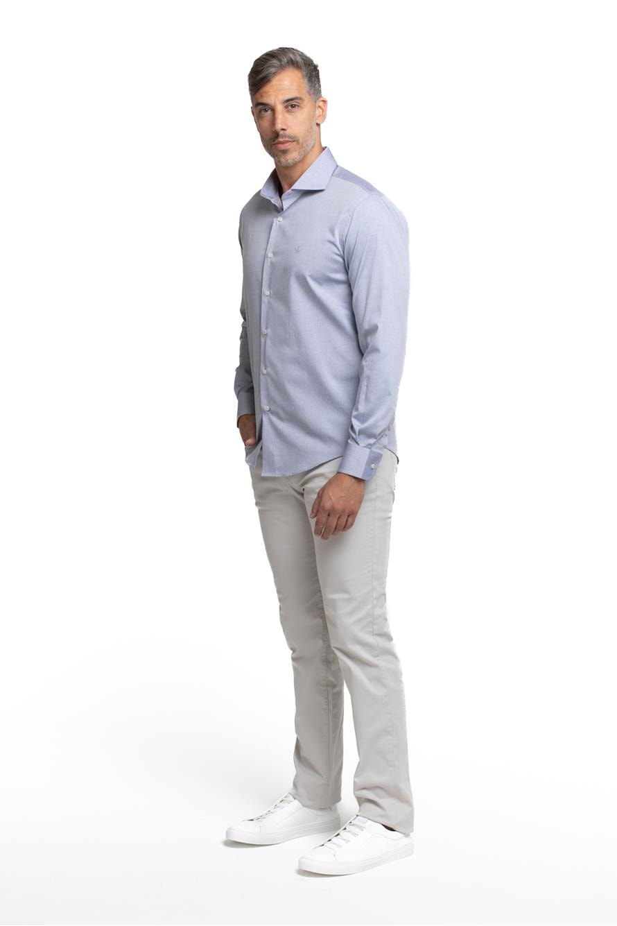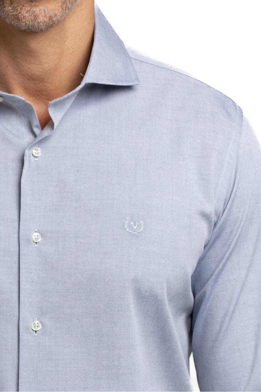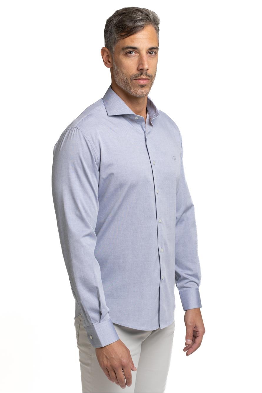 Camisa slim manga longa, colarinho italiano, bordado pequeno no peito no tom da peça, ideal para ser usada com calça de sarja e alfaiataria, compor também com paletó e sapato de couro.