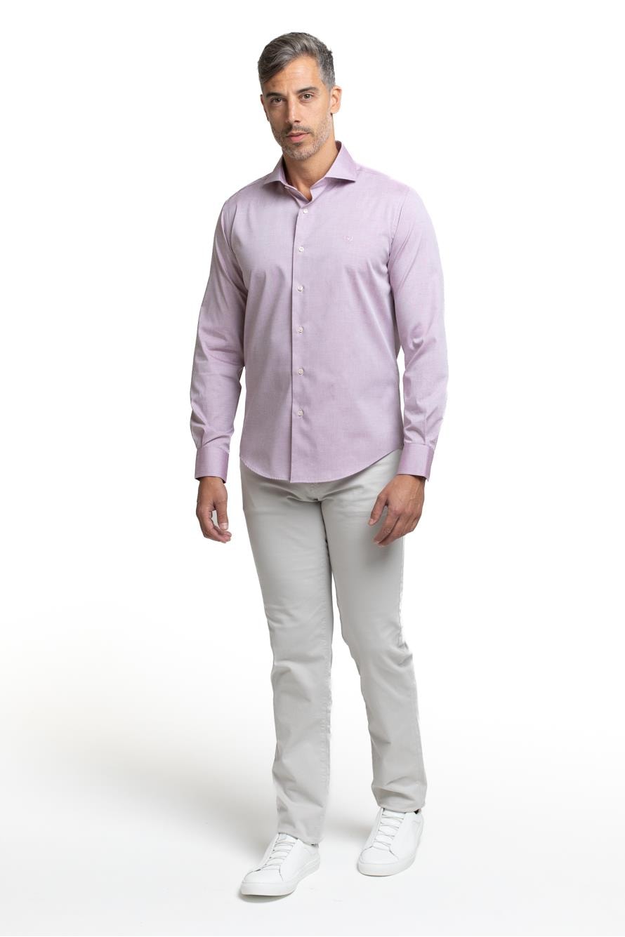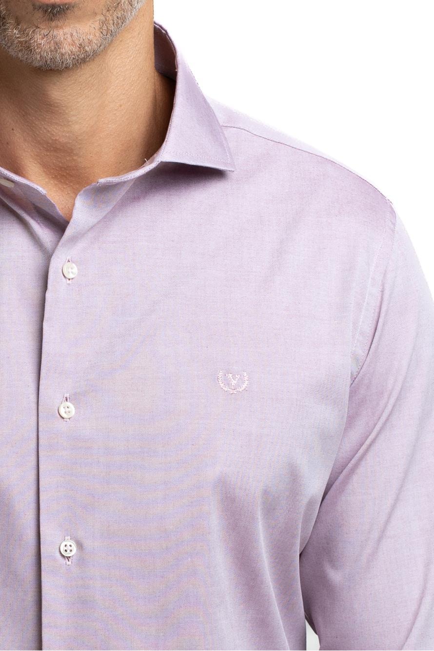 Camisa slim manga longa, colarinho italiano, bordado pequeno no peito no tom da peça, ideal para ser usada com calça de sarja e alfaiataria, compor também com paletó e sapato de couro.