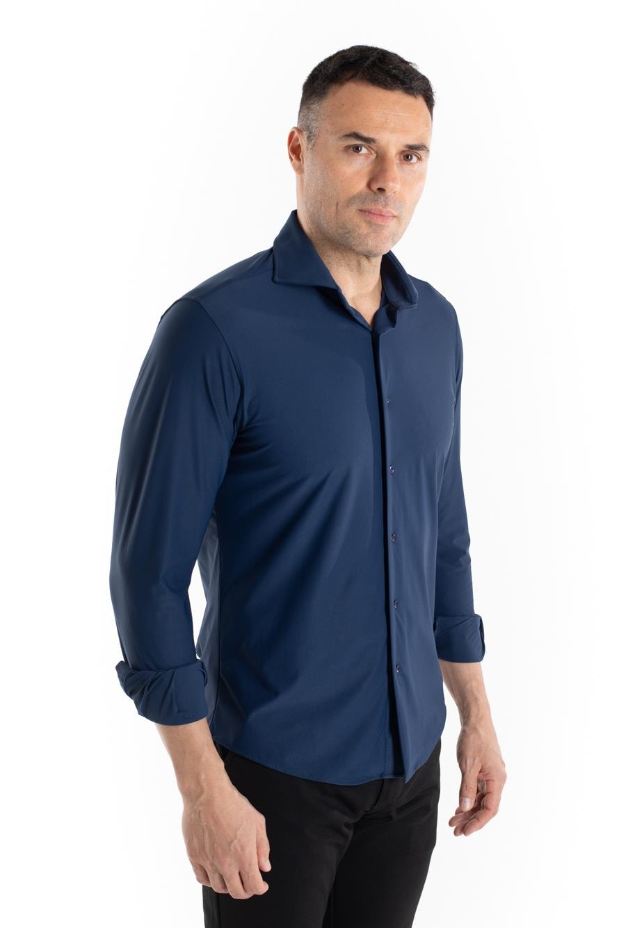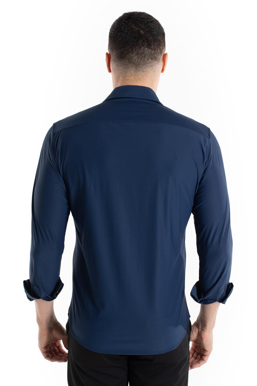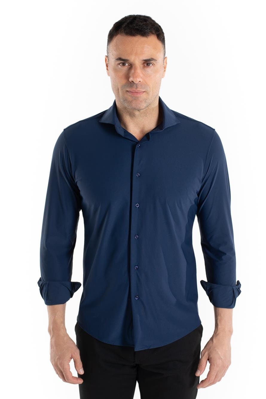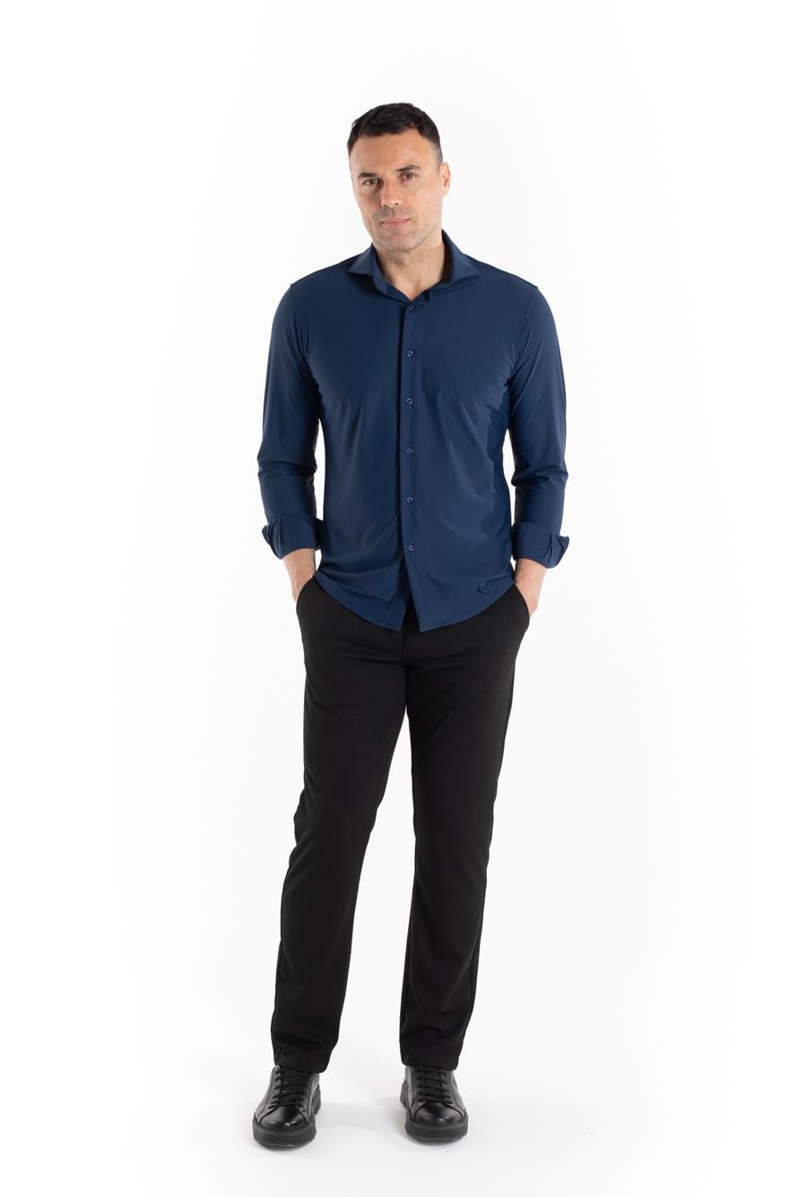 Camisa manga longa de malha poliamida. Prática e confortável, ótimo caimento e flexibilidade, não amassa com facilidade, ideal para viagens a trabalho. Compõe looks com calça jeans e sarja, versátil e moderna.