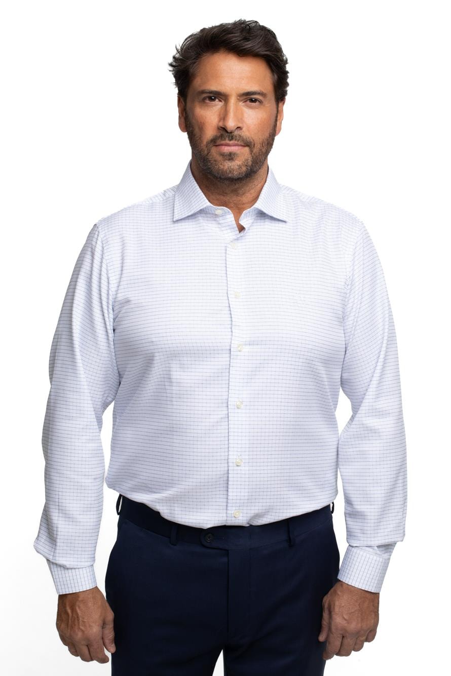Camisa manga longa xadrez modelagem slim, 100% algodão. Com acabamento easy iron facilitando a passadoria. Ideal para ser usado com ternos e calça social avulsa.