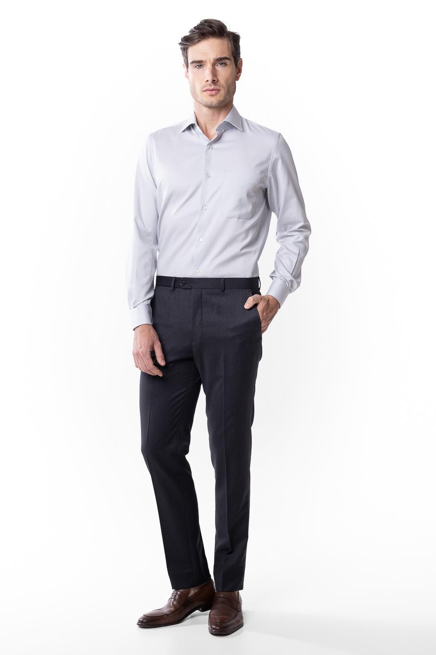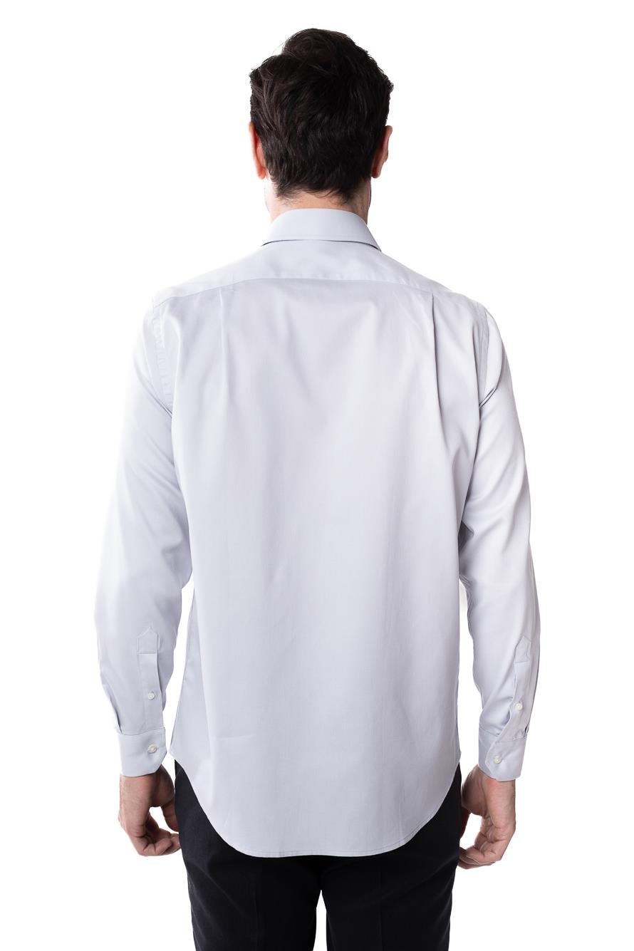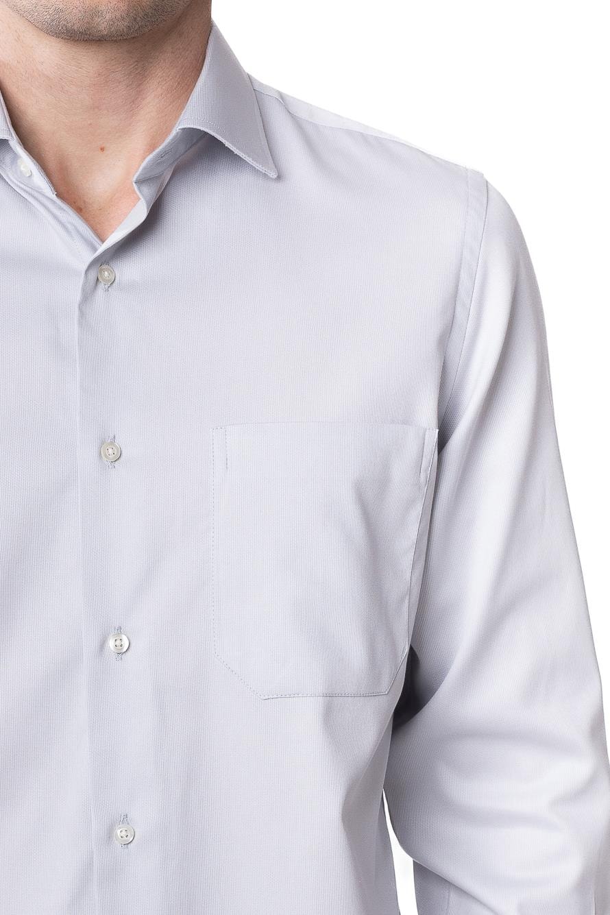 Camisa em algodão, com padronagem discreta e acabamento preciso. Leitura atual do vestir social.