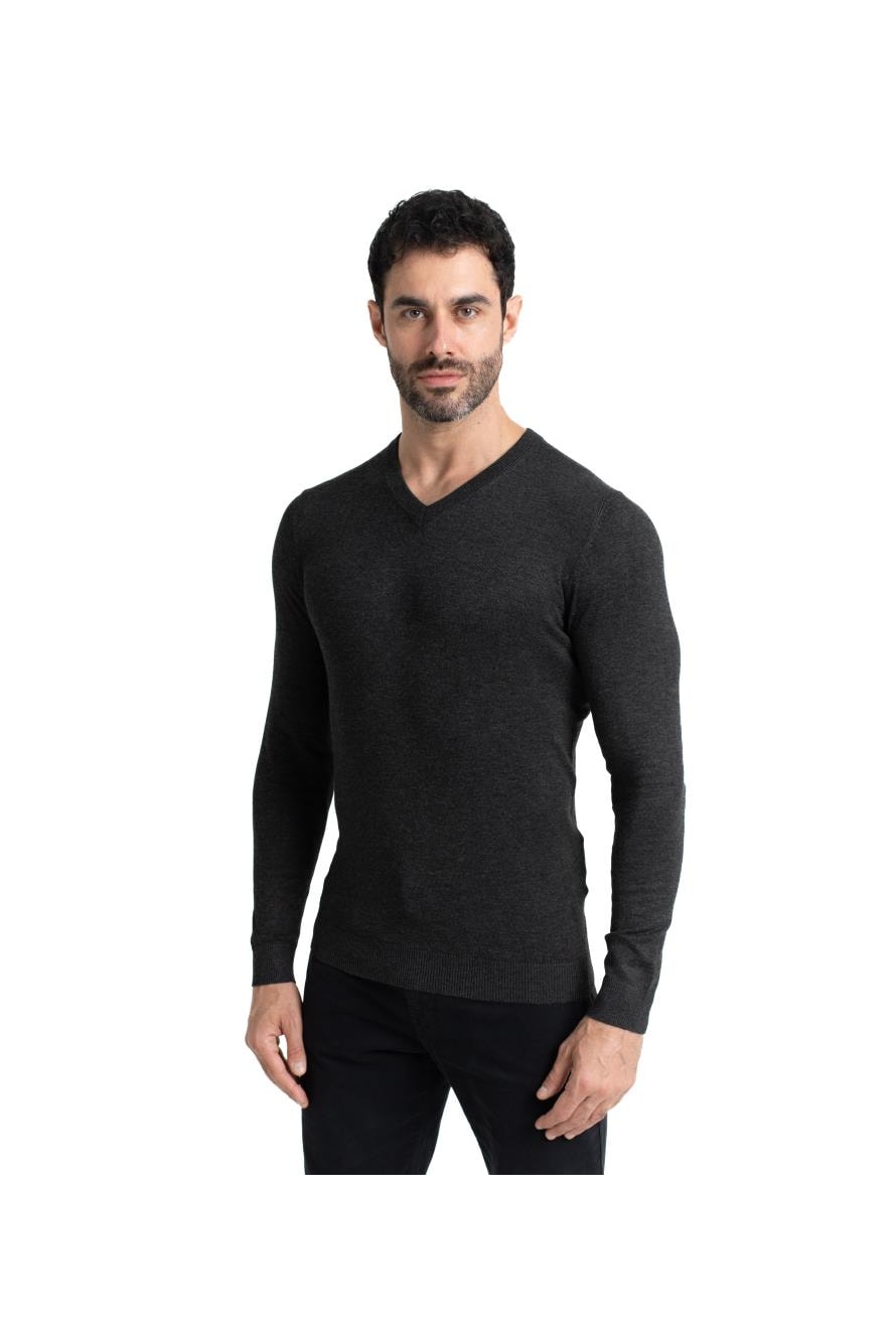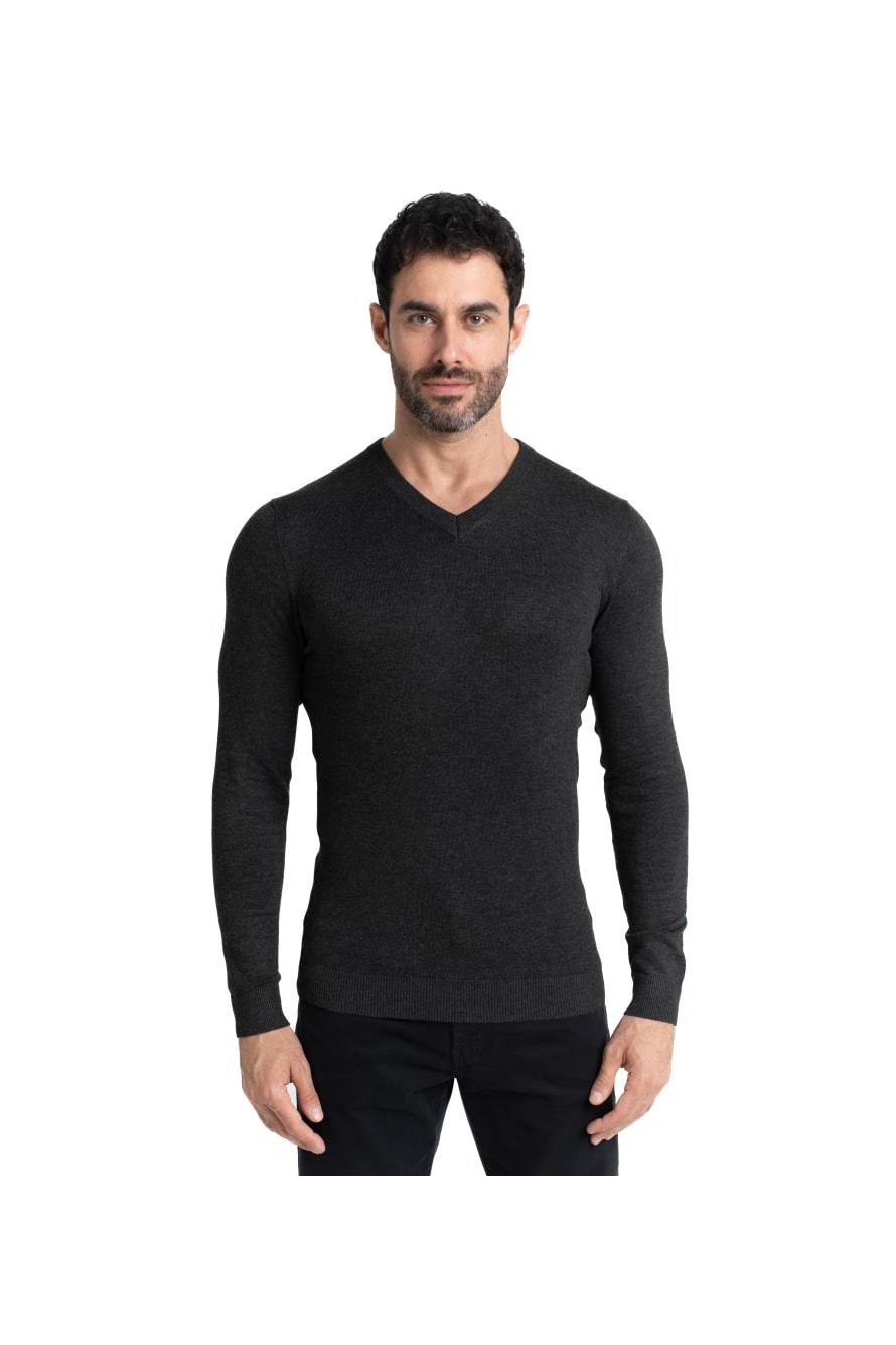 Malha de tricot decote V feita de fio de viscose e poliamida. Tem um pouco de brilho e toque muito macio, leve e confortável essa peça é indispensável nessa estação, pois é ideal para compor looks de sobreposição.