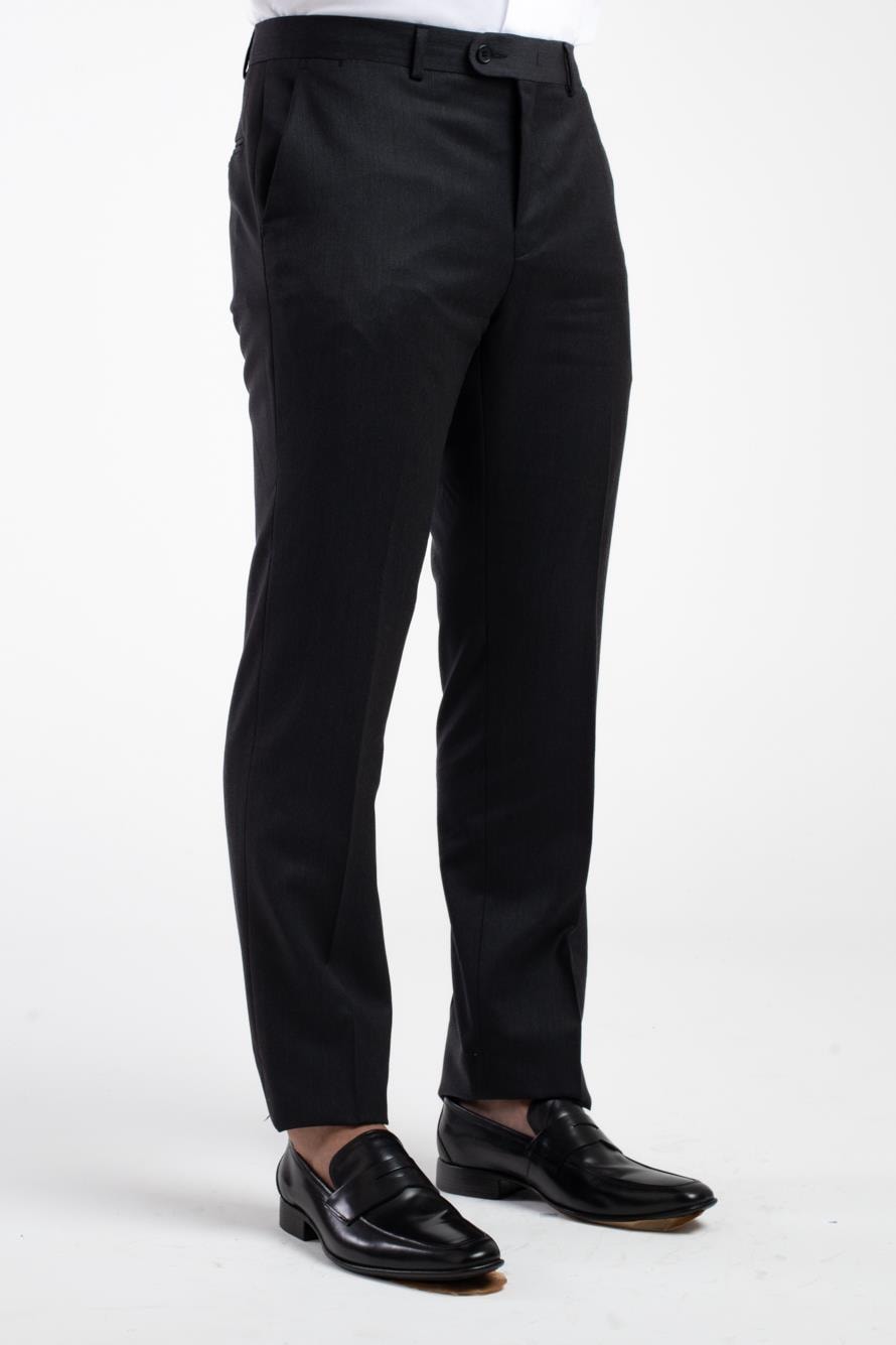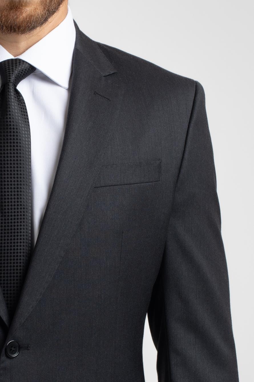 Terno em lã Super 120, com construção precisa e forro acetinado. Estética formal de perfil atemporal.