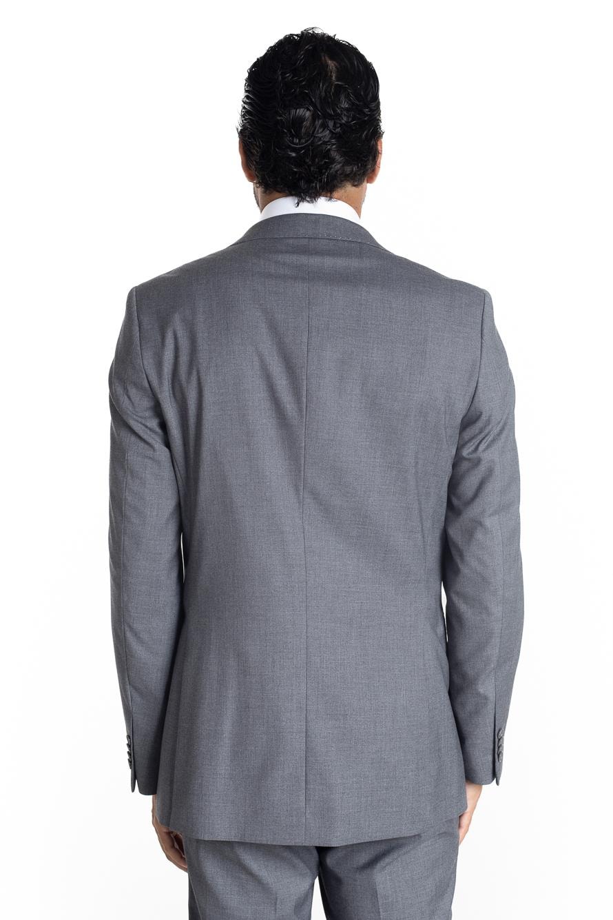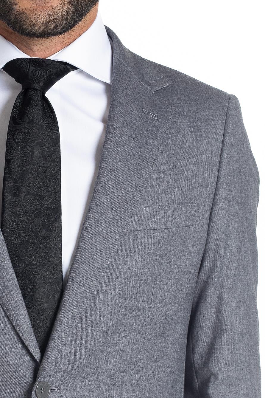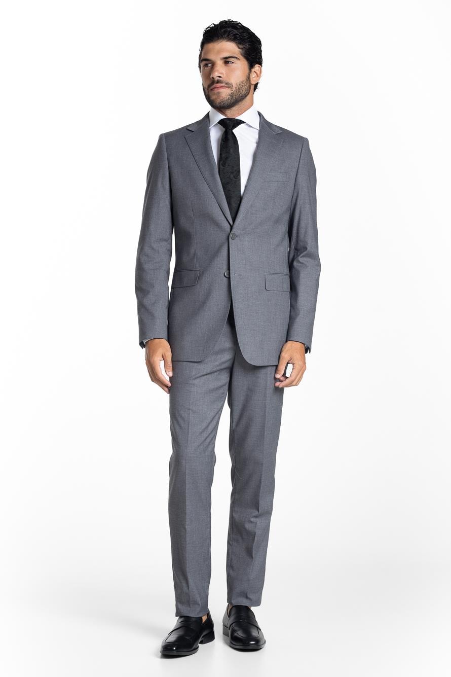 Terno slim de superfície lisa, confeccionado em tecido com viscose para toque macio e elastano que oferece flexibilidade ao movimento. Sofisticação contemporânea para ocasiões sociais e executivas.