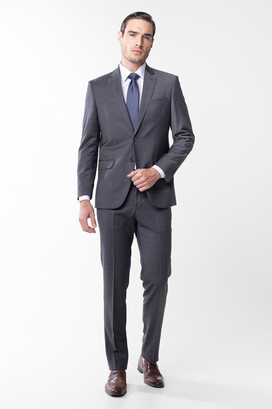 Terno com modelagem slim em lã Super 120, com caimento ajustado e estrutura leve. Adequado a contextos formais contemporâneos.