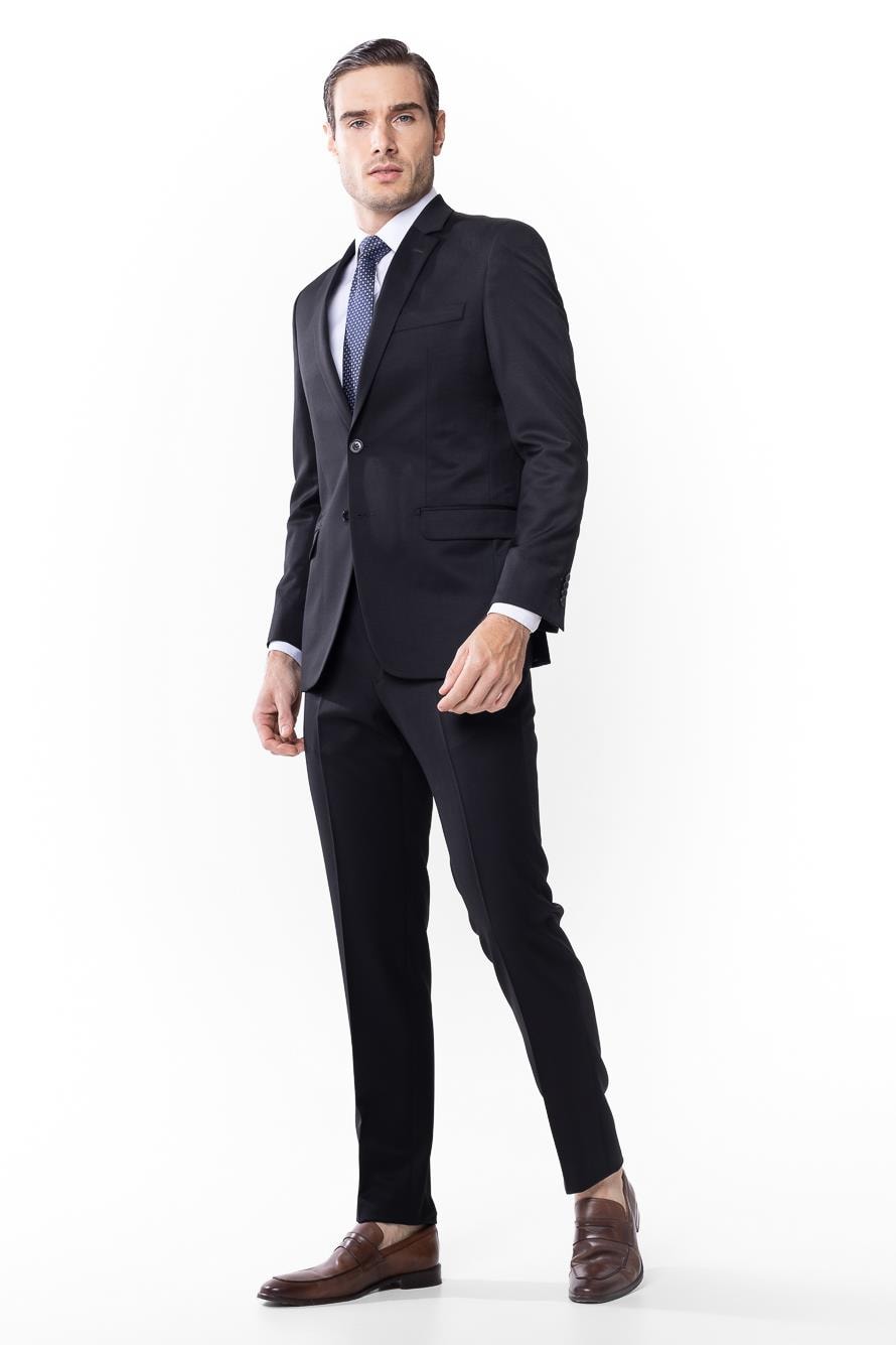 Terno com modelagem slim em lã Super 120, com caimento ajustado e estrutura leve. Adequado a contextos formais contemporâneos.